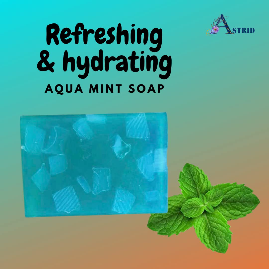 Astrid aqua mint soap , Pack of two (100 gms * 2)handmade soap, peppermint oil, pack of two, artisanal soap, No Parabens and sulphate .The peppermint oil has cooling extracts that refreshes skin instantly and gives a cleansed and detoxified skin