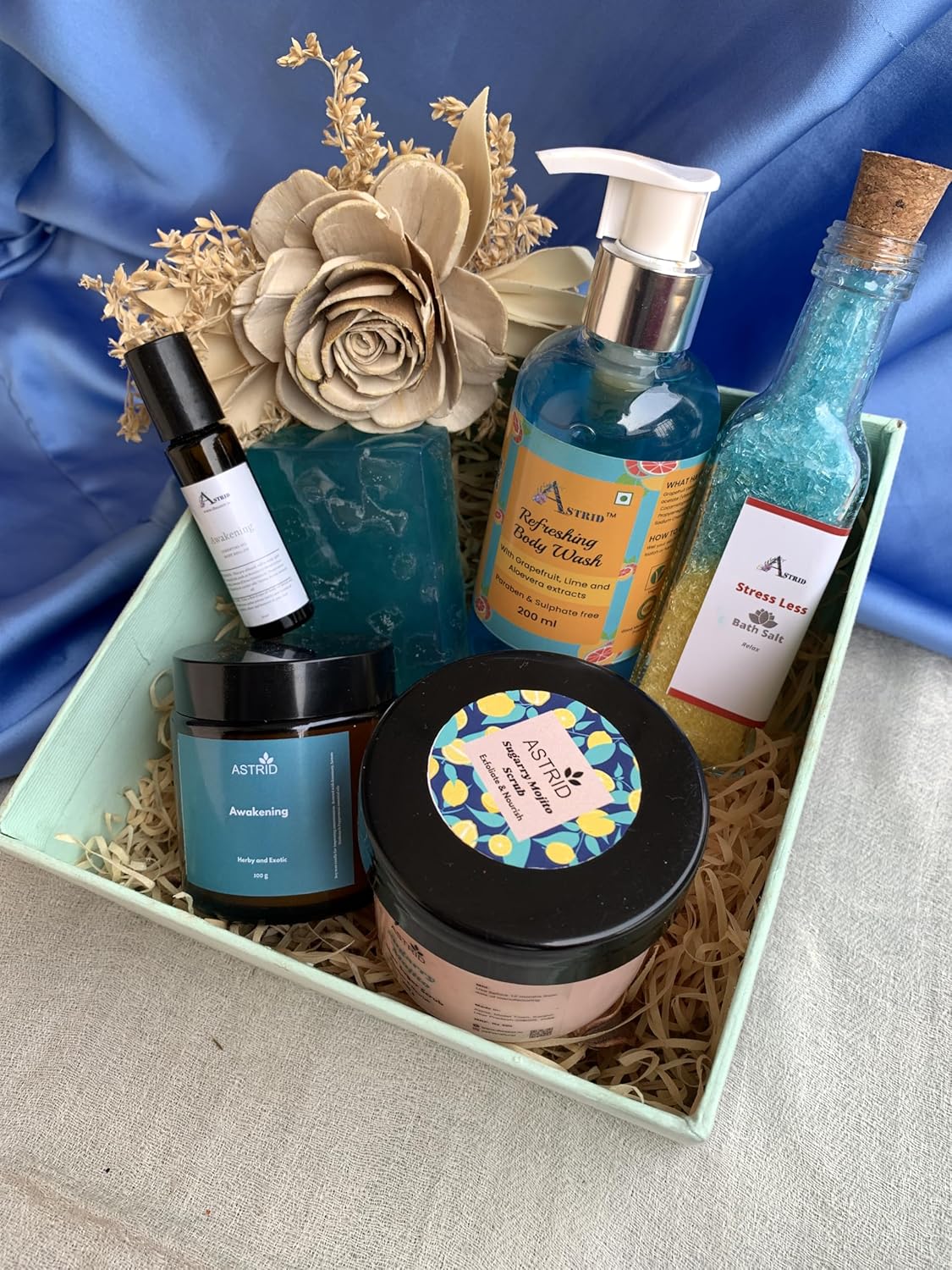 Luxury bath and body hamper, No Parabens and sulphate, All skin type It is a great gift box for someone who likes to indulge in natural skincare. All the products are handmade and free from harsh chemical. They are great way to provide spa experience at home. This hamper is vegan, handmade and cruelty free