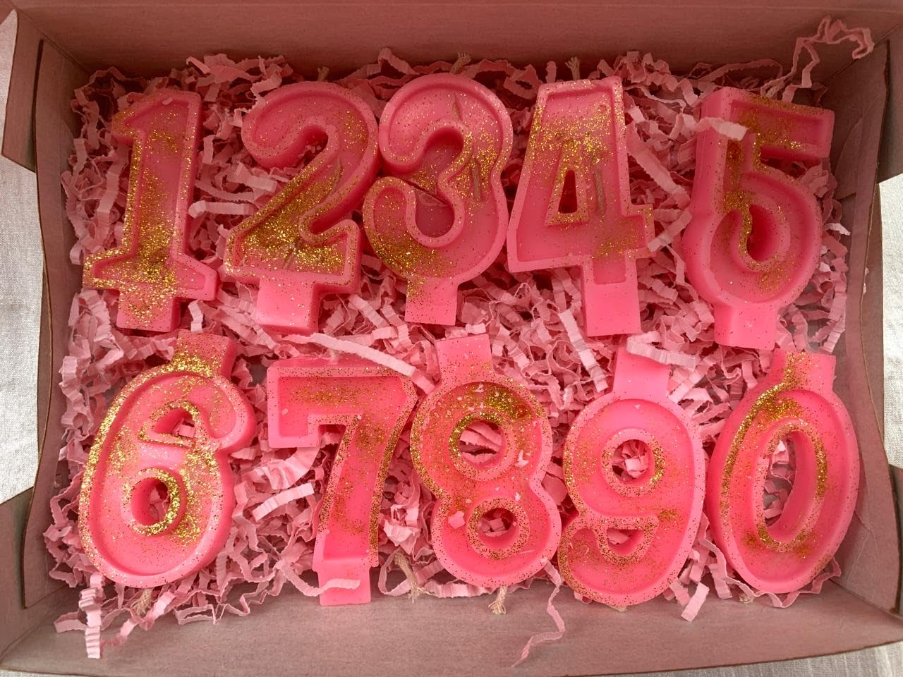 Astrid Glitter Pink Number Birthday Candles crafted from soy wax bring charm and sparkle to every milestone. With numbers 0 to 9 these candles are perfect for birthdays anniversaries and celebrations of all kinds.