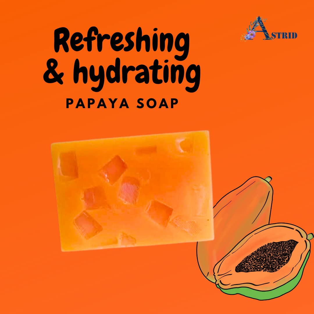 Astrid Papaya soap , Pack of two (100 gms * 2)handmade soap, real fruit extracts, pack of two, artisanal soap, No Parabens and sulphate . No Parabens and sulphate .The mango oil has powerful anti-oxidants enhance overall skin texture from cleansing and detoxifying the skin