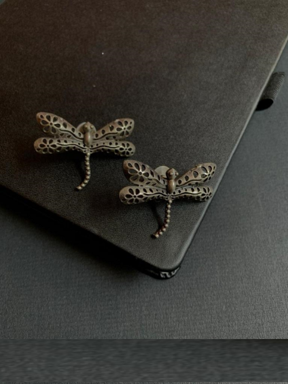 Combo of branch and dragon fly earrings. These gorgeous earrings are quite different from other boring oxidised silver earrings. The branch earring has got a pearl to give it a more refined and detailed look. These earrings are great option for work from home look.
