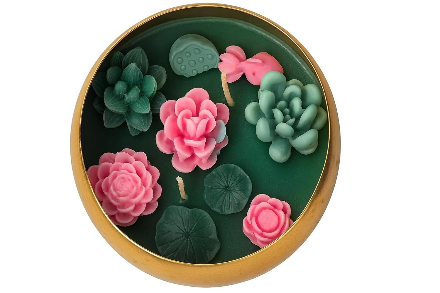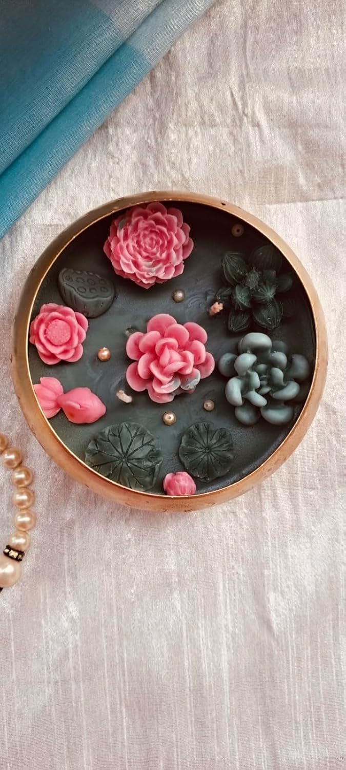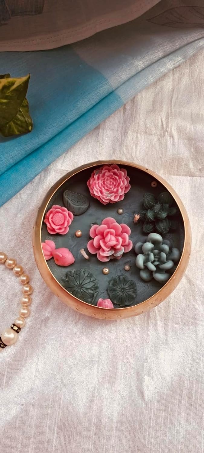 Enhance your living space with the Astrid Urli cented Candle with beautiful Lotus pond design , beautifully housed in a metallic gold jar. Hand-poured using premium soy wax, this candle offers a clean and long-lasting burn.