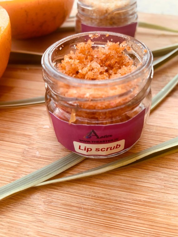 Sugar and butter-based lip Scrub is made with natural exfoliating ingredients such as brown sugar, orange zest, oats and moisturising agents such as cocoa butter and cold pressed oils. The scrub gently removes dead dark skin on the lips and its surrounding areas. This scrub is not harsh as it contains sugar in powdered form and very less sugar granules to give that gentle exfoliation. The cold pressed oils in the scrub, also moisturise the skin instantly after removal of dead skin layer and increase the production of new cells in the skin of lips. Cocoa butter helps in retaining lip moisture and avoiding dry skin, making the skin moist and supple. The fat in cocoa butter forms a protective barrier over skin to hold in moisture and remove any spots, scars on the lips.
